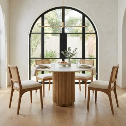 PRITI White Marble Round Dining Table with Base, Seats 4