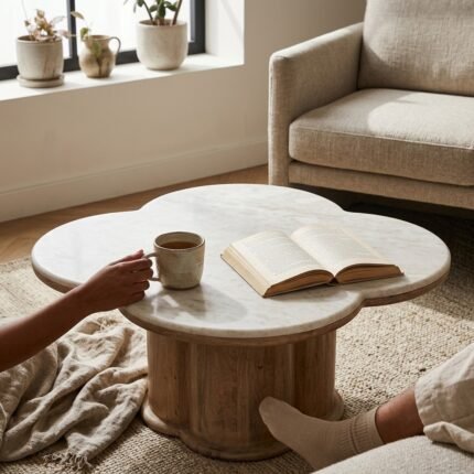 Exclusive Wooden Coffee Table with Marble Top for Home Décor