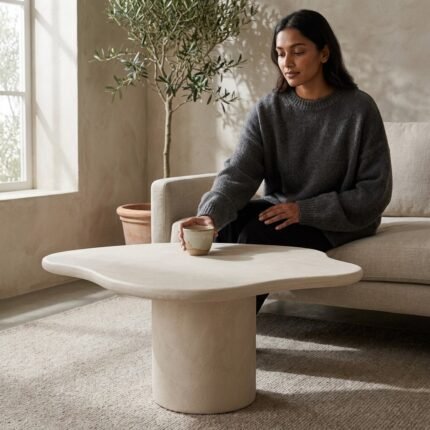 Light Beige Microconcrete Dining Table